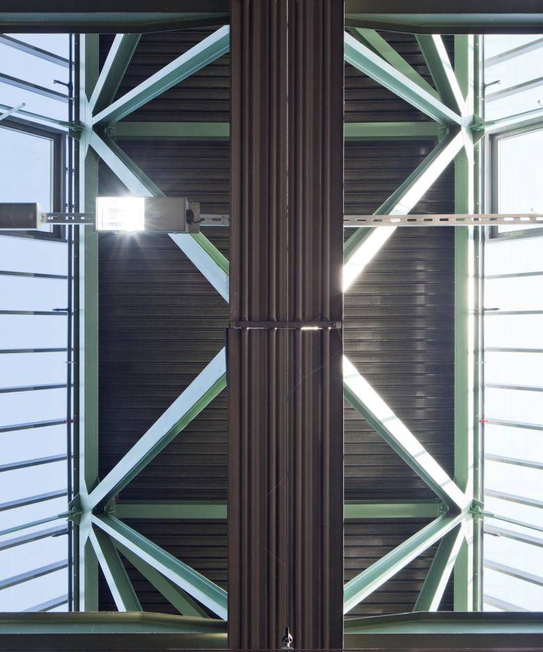Die 1965-69 erstellte zweigeschossige Bus- und Polizeigarage Hardau wies insbesondere im Brandschutz, in der Gebäudetechnik sowie in der Gebäudehülle einen dringenden Instandsetzungsbedarf auf. Ebenso entsprachen die Arbeitsbedingungen bezüglich Raumtemperaturen, Belichtung und Belüftung nicht mehr den heutigen Vorschriften und Bedüfnissen. Zur Erfüllung der Brandschutzauflagen wurden zusätzliche Fluchtwege im Untergeschoss in die bestehenden Lichtschächte integriert. Die Instandsetzung des Daches umfasste den kompletten Ersatz der Flachdächer und der Sheddachverglasungen. So konnte das Dach entlastet, die Energieeffizienz gesteigert und mit dem Einbau der RWA-Flügel die natürliche Entrauchung sowie der sommerliche und winterliche Wärmeschutz sichergestellt werden. Das charakteristische Raster der Fassadengestaltung wurde durch neue Rahmenprofile und Isolierverglasung beibehalten. Aufgrund der fehlenden Lagerplätze wurden die angelieferten Baumaterialien in Tagesetappen verarbeitet. Da die Busgarage ein 24 Stundenbetrieb ist, erfolgten sämtliche Arbeiten unter laufendem Betrieb.