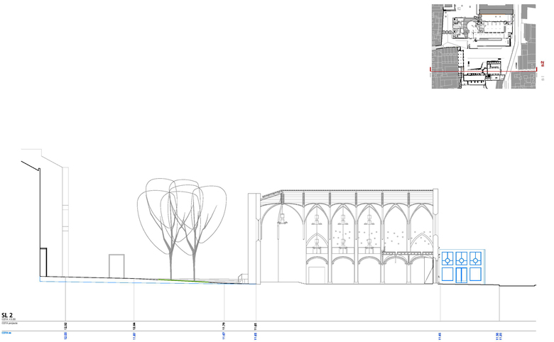 Després de varies ampliacions i canvis d'ús, va ser durant la dècada dels noranta que l'ajuntament va iniciar les obres de reforma de la plaça amb la construcció de l'edifici del MACBA i d’un aparcament soterrat que ocupa pràcticament la totalitat de la plaça dels Àngels i la de les Caramelles. Durant aquests últims anys, els edificis del convent dels Àngels han estat ocupats per el FAD però, després del seu trasllat, han passat a ser utilitzats pel MACBA. Per aquest motiu, s'ha iniciat un procés de reforma que vol millorar la relació entre les tres façanes edificades de la plaça, a la vegada que vol redistribuir els accessos als edificis. El "Projecte Executiu de Senyalització i Urbanització a la zona dels nous accessos al convent del Àngels i el CEDOC" és una de les cinc fases que formen part d'aquest procés de reforma. Les actuacions recollides en aquest projecte volen contribuir a la millora de la qualitat d'aquest àmbit a partir de la revisió de l'accessibilitat, la distribució dels accessos, l'altimetria de l'espai públic, l'evacuació de les aigües pluvials, els materials de pavimentació, el mobiliari i la vegetació. A nivell altimètric el projecte preveu el canvi de cota de gran part de la zona actualment deprimida respecte la plaça, per a igualar-la a la cota del seu entorn. D'aquesta manera es millora la connexió entre la plaça del Àngels i la de les Caramelles al mateix temps que permet situar l'entrada al CEDOC per la cantonada del passatge, i així, dotar-lo d'activitat. A la part lateral del convent dels Àngels es construeix una rampa tangencial a la façana amb uns graons que permeten arribar a la cota de la plaça frontalment. Aquests estan lleugerament inclinats per afavorir l'accés a la cantonada on hi ha el passatge de connexió amb la plaça de les Caramelles i l'entrada del CEDOC. D'aquesta manera, les escales es separen més de la façana del convent dels Àngels a mesura que es van fent més profundes.