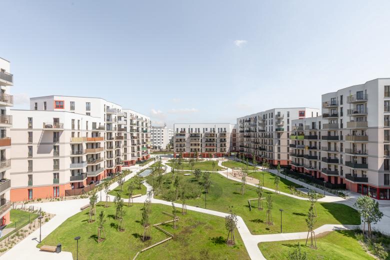 Der Kapellenhof im 22. Bezirk bietet leistbares Wohnen bei hoher Lebensqualität. Der perforierte Blockrand mit einem großzügigen Innenhof erinnert an den traditionellen Wiener Gemeindebau. Die Wohnungen bieten helle Räume, Weitblick und Grünraum. Der Hof im Zentrum der Anlage gestaltet sich abenteuerlich offen, bietet einen fließenden Übergang von Rückzugsflächen und Plätzen, die zur sozialen Interaktion anregen. Hofseitige Hauseingänge bilden mit dazugehörigen Gemeinschaftsträumen und Gemeinschaftsterrassen ein einladendes Ensemble. Ein erhöhter Sockel, der die Masse der Baukörper erdet, die stringente französische Fenstergliederung in der Hauptfassade, polygonale Balkone gemeinsam mit der Farbigkeit der unterschiedlichen Elemente erzeugen eine Homogenität in einer heterogenen Umgebung.