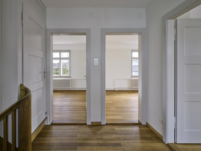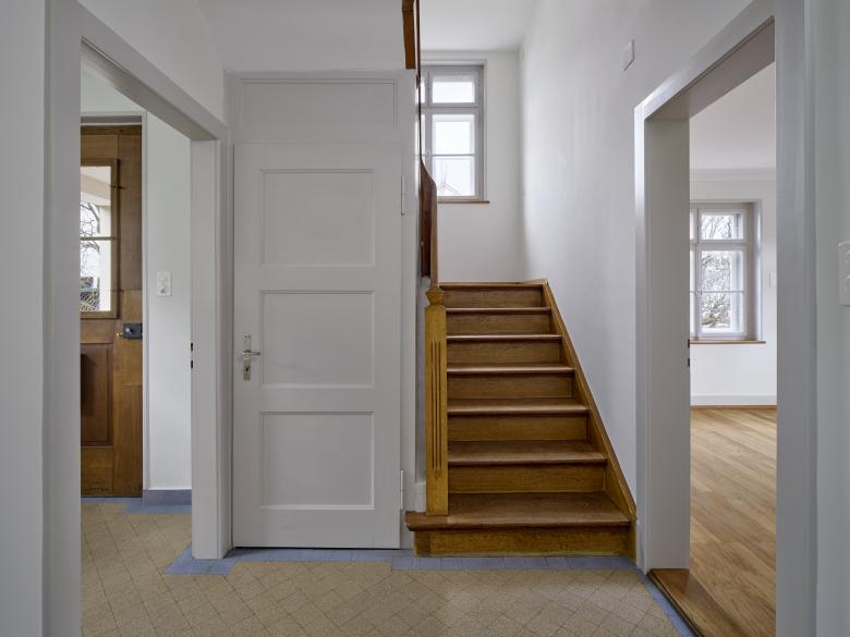 Das sorgfältig instand gesetzte, kommunal geschützte Baudenkmal von 1932 liegt an zentraler Lage in Therwil. Der grosse Garten ist geprägt von regional typischen Hochstammbäumen und wird nach den Richtlinien von Bio Terra bewirtschaftet. Das freistehende Einfamilienhaus wurde umfassend unter Verwendung baubiologischer Farben und Putzen renoviert und verfügt neben den üblichen modernen Installationen für eine nachhaltige Bewirtschaftung über eine Regenwassernutzungsanlage für die Gartenbewässerung sowie Ladestationen für Elektromobilität in der Garage.
