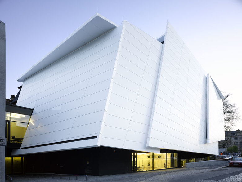 Bei der Erweiterung der Hochschule für Musik Carl Maria von Weber Dresden handelt es sich um die Ergänzung von Übe- und Einspielräumen, einem Bewegungsraum, einer Bibliothek, einem Studio für die Opernklasse und einem Konzertsaal für 450 Personen. Durch die Ergänzung des Neubaus ist ein Ensemble entstanden, das der Hochschule eine besondere Identität gibt und der Musik einen zeitgemäßen architektonischen Ausdruck verleiht. Die Hülle des Konzertsaales entwickelt sich antithetisch zum historischen Bestand und löst sich aus den baukonstruktiven Bedingungen. Durch diese räumliche Gegenüberstellung setzt sich die klassizistisch gefügte Altbaufassade formal mit der frei gefügten des Neubaus auseinander. Innen verdichten sich um das Auditorium herum dynamische Flächen zu einem zentralen Raum für Musik mit großer akustischer Klarheit.