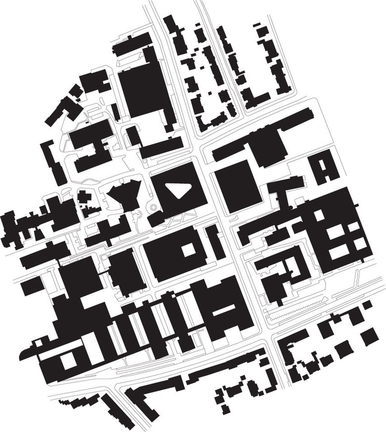 Auf dem ungerichteten Grundstück ordnet sich der Baukörper geometrisch eindeutig in das heterogene Umfeld ein, besetzt wie selbstverständlich alle relevanten raumbildenden Kanten und erzeugt so einen angemessenen städtischen Kontext. Unter Einhaltung ausreichender Abstandsflächen ist es ein Anliegen des Gebäudes, sich in der Höhe nicht über Gebühr hinaus darzustellen, vielmehr soll städtischer, dichter Raum erzeugt werden. Die große Baumasse soll angemessen, eher niedriger, erscheinen, um keine bauliche Dominanz in der Höhe gegenüber den benachbarten Klinikbauten und der Wohnbebauung auszuüben.