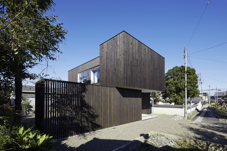The site overlooks a beautiful mountain range in Saijo City, Ehime Prefecture. On the other hand, the site is surrounded by houses and factories on all four sides. The northern side of the site is occupied by the family's soy sauce factory, while the eastern side is occupied by the parents' residence. A young couple and their children returned from Tokyo to take over the family business. Our goal was to create a house that maximizes the richness of this environment while continuing the simple urban lifestyle.