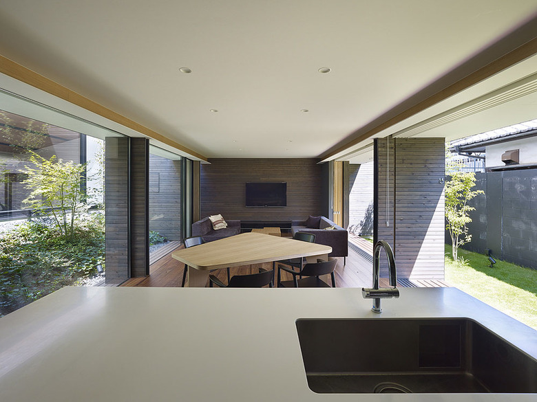The theme of the project was how to obtain lighting and ventilation by dispersing the rooms in a dense residential area, but the result is a space where one can feel the changing of the seasons.