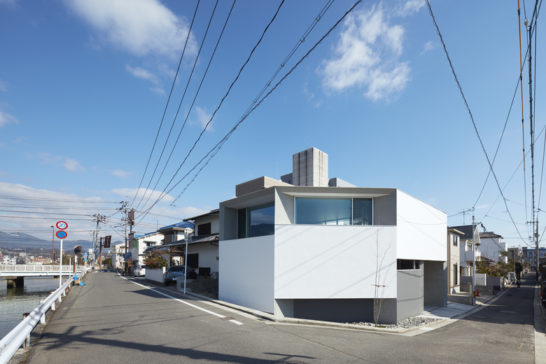 A river runs across the road on the west side of the site, and looking to the north, a beautiful mountain range spreads out beyond the cityscape. We considered the “boundary” to realize a lifestyle that incorporates a rich environment, while taking into consideration the noise from the road along the river and the nearby national highway, as well as the need to ensure privacy.