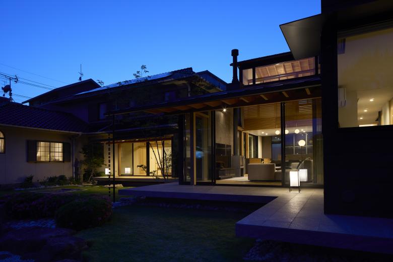 This house is located in the western part of Hiroshima City. Originally, a one-story house was built 60 years ago, but 30 years later, an addition was added to the house, transforming it into a large building. This time, the 60-year-old wing was detached and rebuilt, leaving the addition intact. The site is a large site, rare in Hiroshima City, with a long east-west dimension and a Japanese garden to the south, which has been inherited from the previous generation. The new building will house the parents' household and the existing building will house the children's household.
