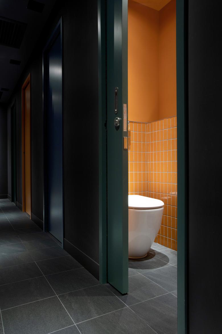 However, vintage design and detailing don’t usually go hand-in-hand with cost effective design. This drove us to rethink materiality, utilizing local materials where we could, and reducing structural interventions where possible. We used the same economical mosaic tiles seen in the old local shops of Hong Kong to distinguish the central seating area; enjoying the reference to something so uniquely Hong Kong used in a contemporary way. The nine bathrooms (yes sooo many required) use simple materiality and colour, providing an opportunity to be playful and add an element of drama.