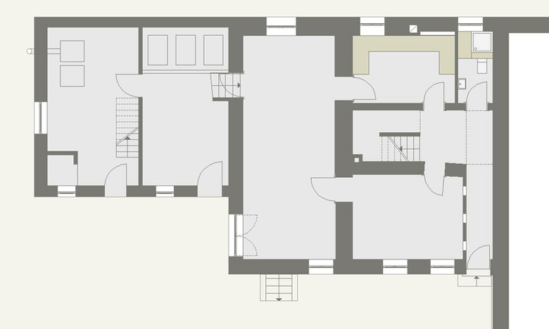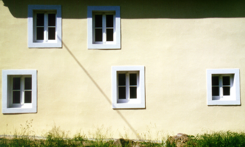 In die Giebelfassade wurden zusätzlich große Fensteröffnungen eingefügt, die in ihren Proportionen exakt den bestehenden Fensteröffnungen entsprechen.