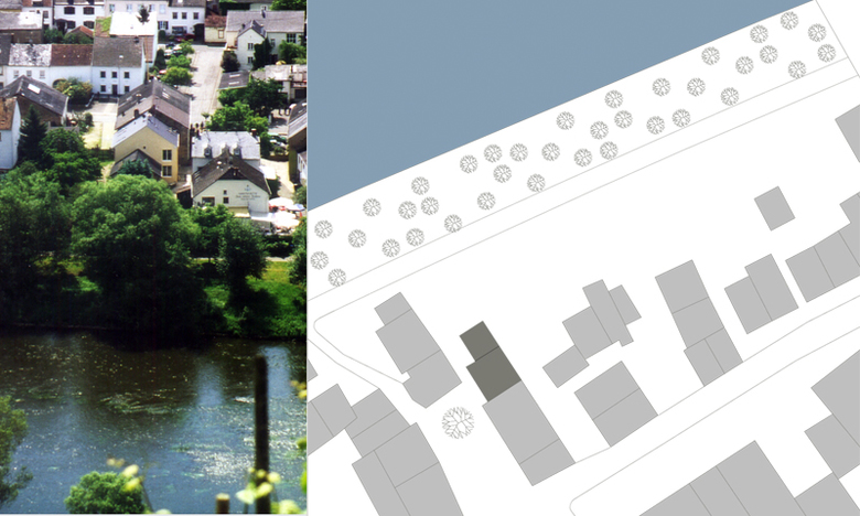 Das Gebäude wurde im 18.Jhd. errichtet und in den folgenden Jahren mehrfach umgebaut. Es ist Teil des historischen Dorfkerns von Kanzem und begrenzt mit seiner Eingangsfassade den Dorfplatz. Die Planung und Realisierung erfolgte im Rahmen der denkmalgeschützten Erneuerung des historischen Dorfkerns von Kanzem. Durch wenige und gezielt behutsame Eingriffe in die vorhandene Bausubstanz wurde mit einem begrenzten Budget im Gebäudeinneren viel Transparenz und Offenheit geschaffen.
