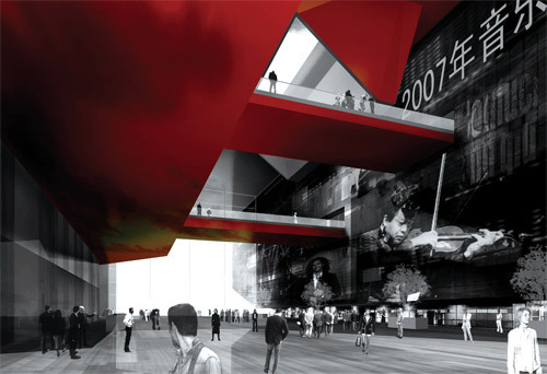 "Architecture is frozen music" being the thematic concept of the design, which metaphors and highlights the building's purpose. Based on absorbing the essence of traditional culture, it is built into a characteristic and delicate architecture, which can hold many kinds of activities. Besides emphasizing the visual identification, we dedicate to the unity of architecture and landscape.