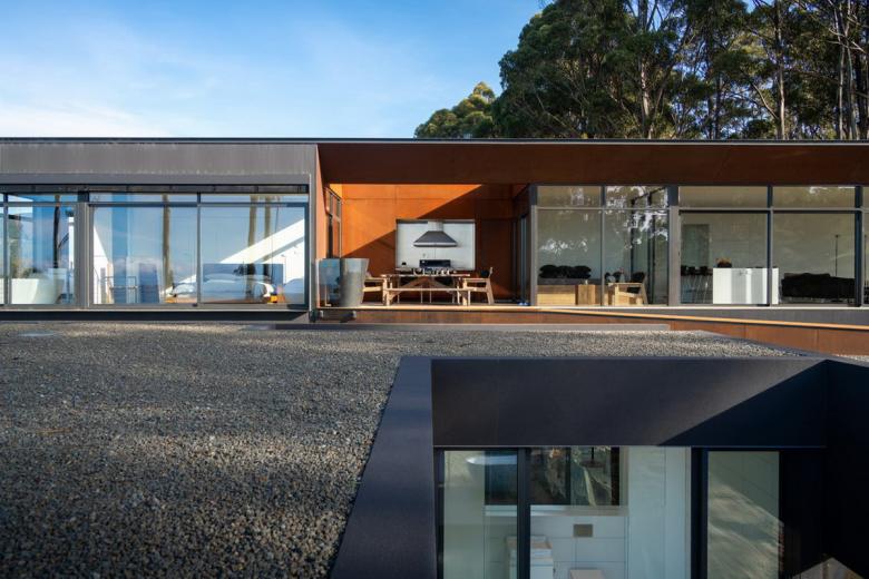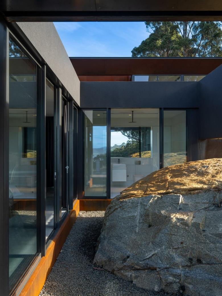 MountainTop Snug Resort House is nestled in a lush forest on the hillside of Snug, just over 20-minutes drive from the center of Hobart, Tasmania’s capital city. The site area is 2.3 hectares, and from the resort house, guests can enjoy panoramic views of Snug Beach, as well as Bruny Island North and Tinderbox Peninsula.