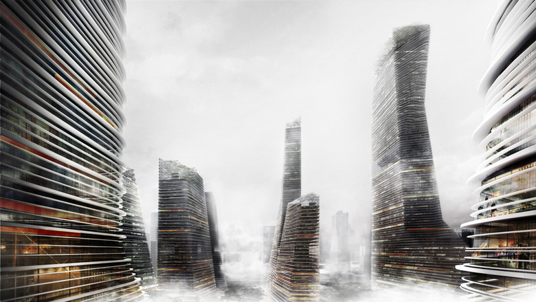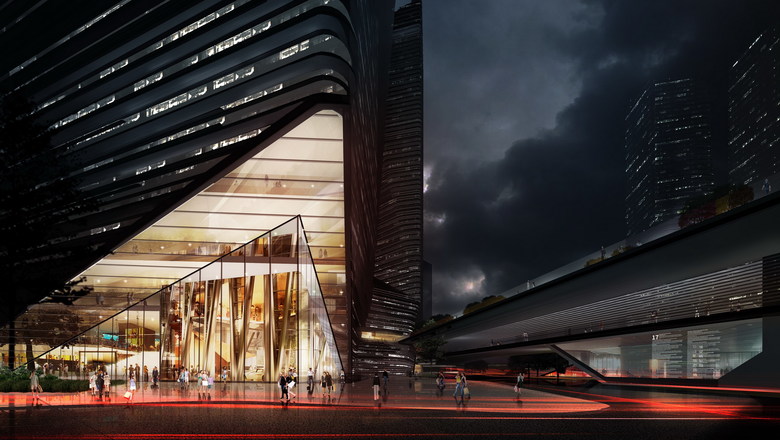 From the concept of “mountain fortification” the design starts from the existing urban design, whilst considering building functionality, layout, height control, and introducing vertical stacking, mixed layouts, sky gardens, and two-story corridors. By carefully integrating building forms, a group of ultra high-rise buildings with a deliberate and powerful shape is finally produced