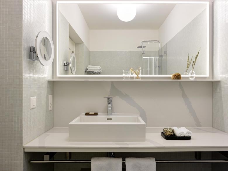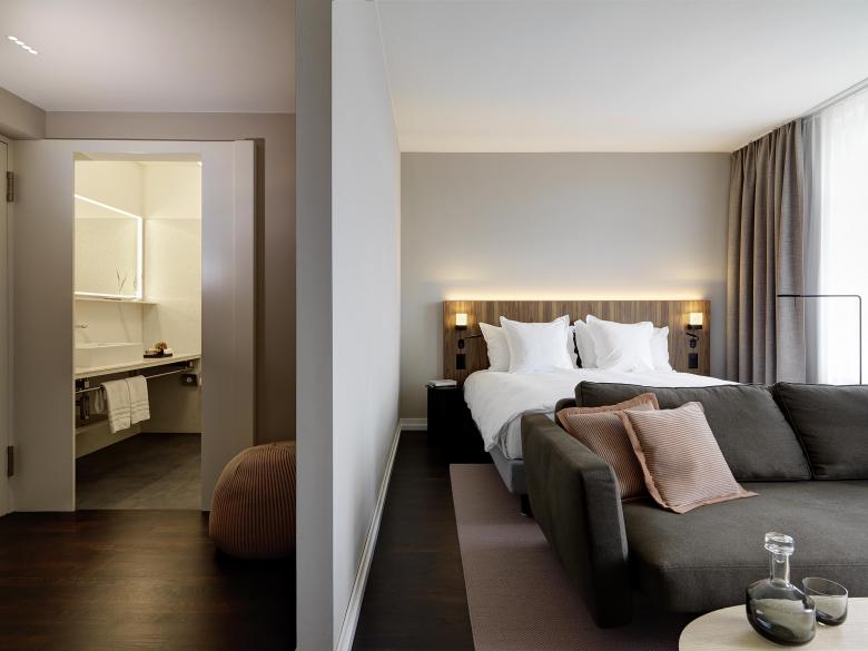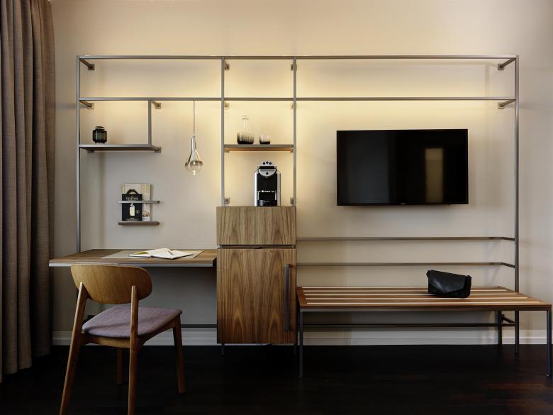 Die Gestaltungsstrategie ist Reduktion & Multifunktionalität. So wirken die Zimmer leicht, elegant und persönlich. Die „Swissness“ wird jenseits von urchigen Klischees repräsentiert. Ganz unter dem Motto „Think global, act local“, ist die Gestaltung lokal, wertig, langlebig, handwerklich und somit nachhaltig.