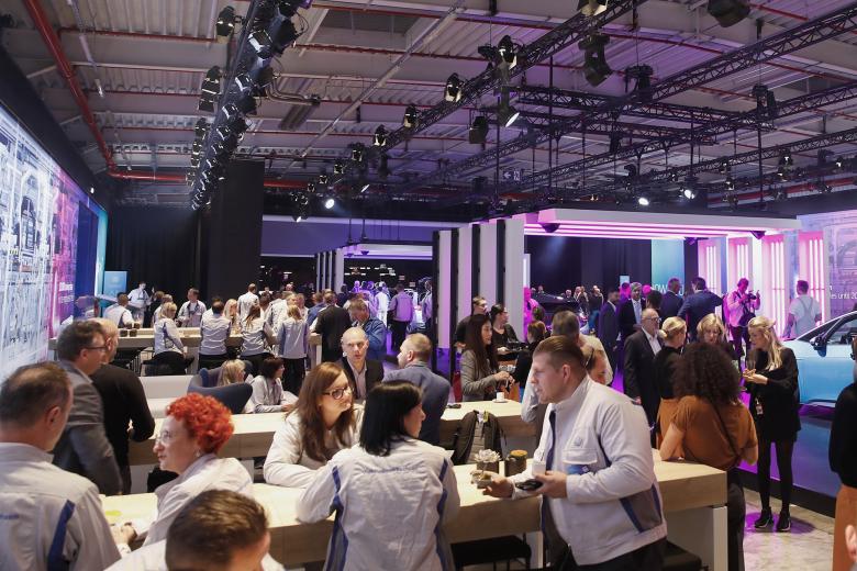 Um die Authentizität der Veranstaltung zu unterstreichen, fand diese mitten im Zwickauer Werk statt – denn ein gelungener Transformationsprozess hat sehr viel mit Identifikation zu tun. Die konzeptionelle Idee für das Event sollte deshalb für alle Gäste erlebbar machen, wie die Volkswagen-Belegschaft die tiefgreifenden Veränderungen mutig angepackt hat. Wandel hat am Produktionsstandort eine lange Tradition: Zunächst wurden dort Fahrzeuge der Marke Horch, später der Trabbi und noch heute der Golf gefertigt.