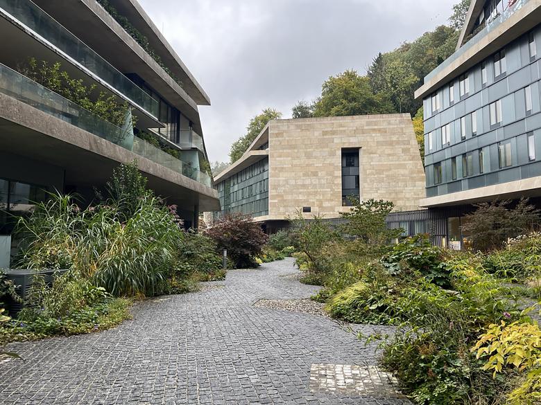 Der Gestaltung des Geländes der ehemaligen Sternbrauerei kommt gemeinsam mit der Gebäudearchitektur eine wichtige Stellung in der Positionierung der Anlage als exklusiver Wohn-, Wellness- und Aufenthaltsort zu. Die Außenanlagen verschränken sich mit den Gebäuden, die Grenzen zwischen Innen und Außen fließen ineinander, ein prägendes Bild für die Einheit von Gebäude und Freiflächen entsteht. Die Landschaft bringt in diese Verbindung eigenständige Werte ein, die in Übereinstimmung mit dem architektonischen Entwurf, der Tektonik der Landschaft, der Kanten und Einschnitte in Wert gesetzt: Künstliches trifft auf Natürliches.