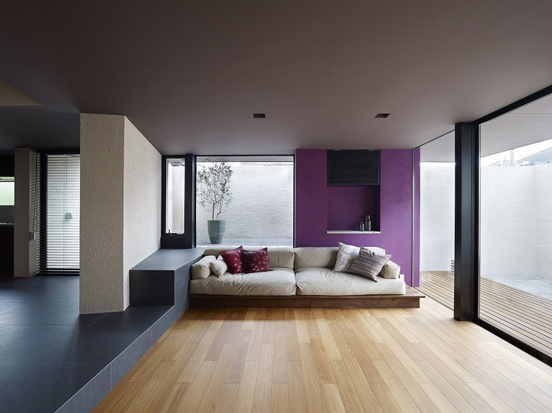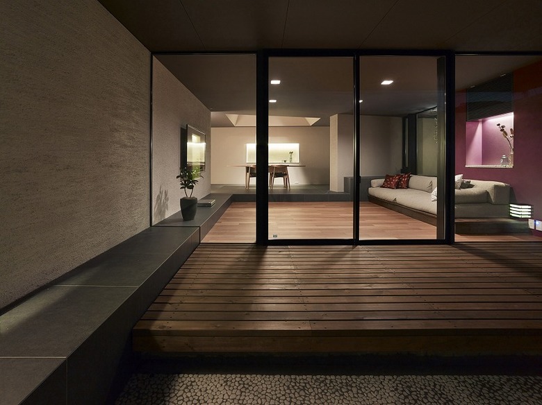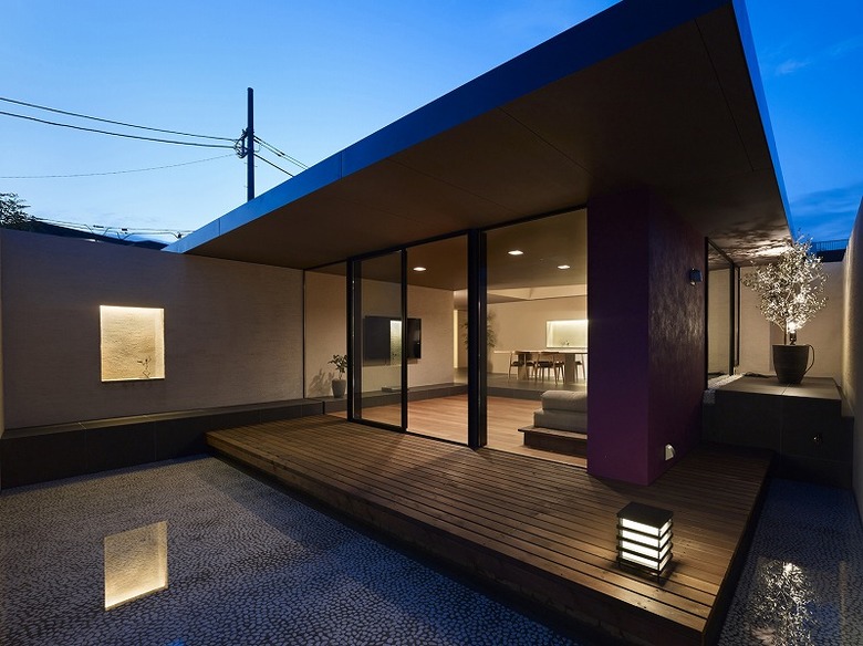 A large square roof shelters the semi-enclosed interior spaces of this home.