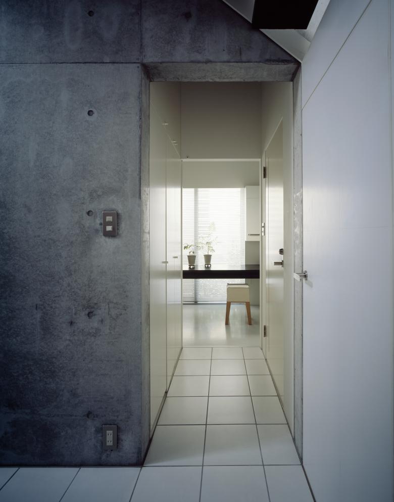 Although wood is the primary structural element, the house is actually an accumulation of boxes constructed from materials chosen for their functionality. The bedrooms are wood, the kitchen and bath are concrete that serves as a heat reservoir for the whole house, and the study uses steel plates in place of suspension cables for support. Windows bring fresh air and scenery, as well as a sense of connectivity, to the space as a whole.