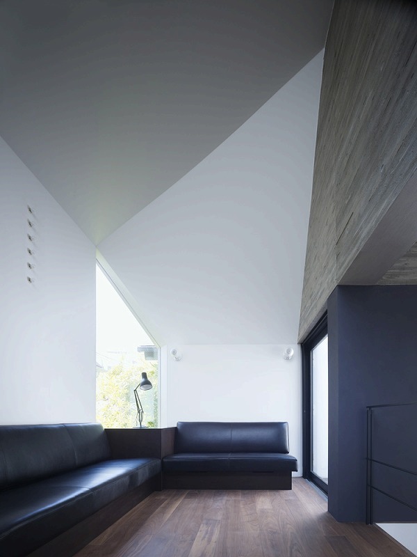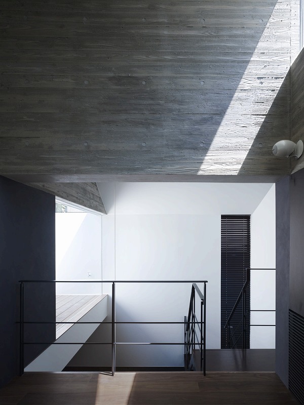 The southern side of the house, which faces onto the road and has no windows aside from those in the entryway, gives the impression of a closed-off, somber structure. Inside, however, the mood is entirely different, with light and shadow fluctuating throughout the day to create a diversity of scenes.