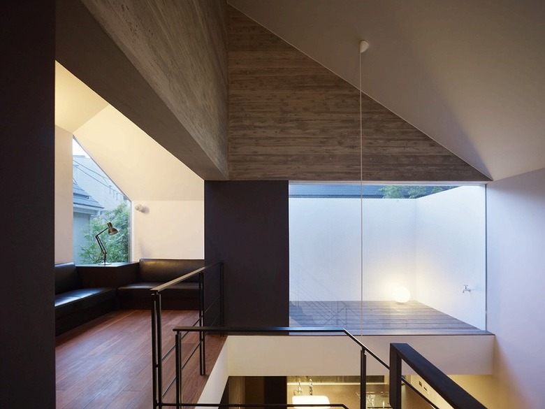 The living room is located on the top floor, with a terrace connected to it and a second roof terrace facing onto the void above it. Light and fresh air from the terraces and void pour into the first-floor dining room and kitchen.