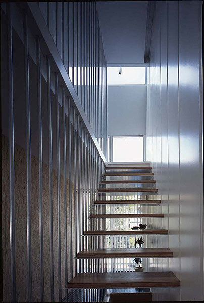 Because this project is located on a small lot with a narrow frontage (5m x 16m) in the center of Tokyo, it was important to find a way to make the walls as thin as possible while also layering on multiple stories. Another goal was to develop a construction method that was simple and systematic, did not require special technical skills, and controlled the thermal environment despite the thin walls – in other words, a highly versatile construction method that could be used anywhere in the world. The result was a four-story, ten-meter-high structure constructed from light-gauge steel channels fastened together with bolts. Including finishing materials, the walls measure ten centimeters thick.