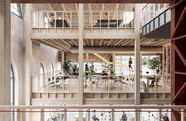 Located in the Varvstaden district, a new sustainable neighbourhood in Malmö, Gjuteriet is to be transformed into an innovative, open public meeting place. The historical building represents the foundation for what will become a contemporary and versatile work environment, reinterpreting the original scale and the former shipbuilding industry into a vibrant creative hub. The transformation fills Gjuteriet, a significant building with strikingly robust character, with new unexpected spatial experiences and proposes a flexible structure in the long term. The design activates the surroundings and utilizes the unique location by the shipyard’s inner basin, the quay, and the adjacent dry dock. It introduces new connections and places public activities on the ground floor, supporting the development of the emerging city life.