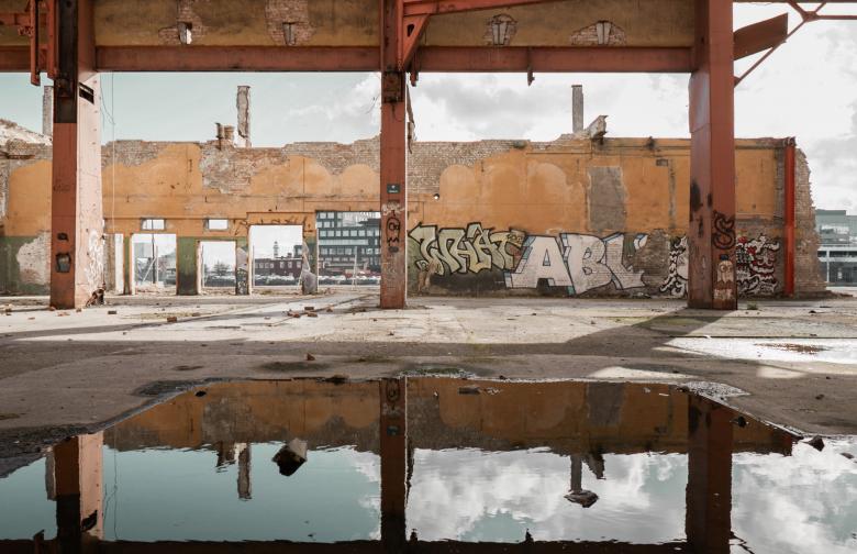 Gjuteriet is a visible, prominent building in Malmö, representing an important part in the history of shipbuilding industry and the identity of the city. The building was originally built in 1910 as a foundry producing metal castings for ship machinery and bridge parts. The frequent adaptations to everchanging needs and functions in different eras have left the building in a state of a ruin we see today. It was partly or fully extended towards the north, west and east. These extensions, buds or sprouts, have mostly been demolished yet left visible imprints in the facades.