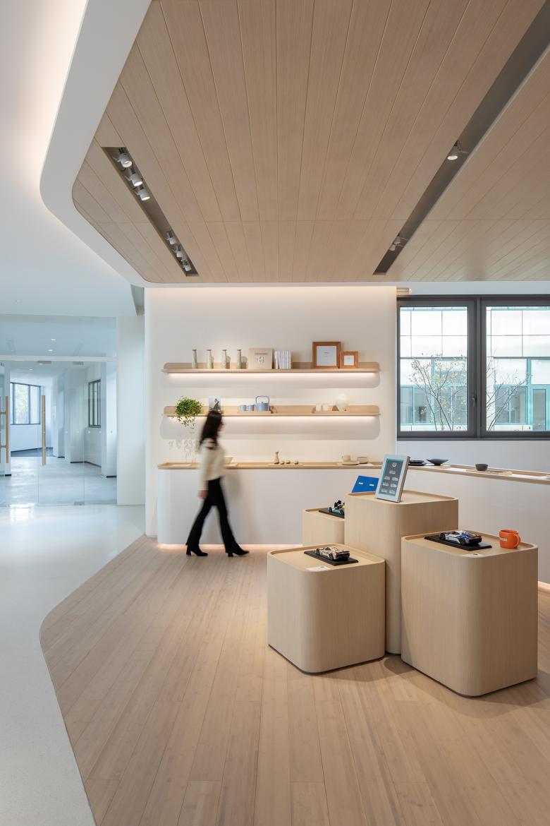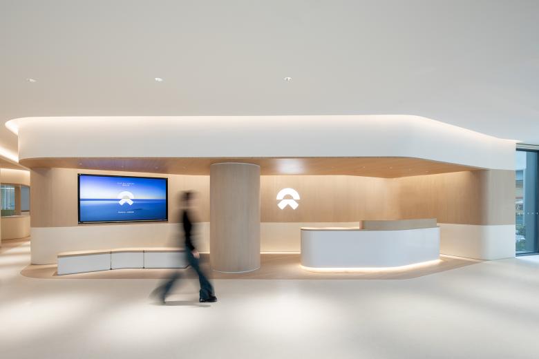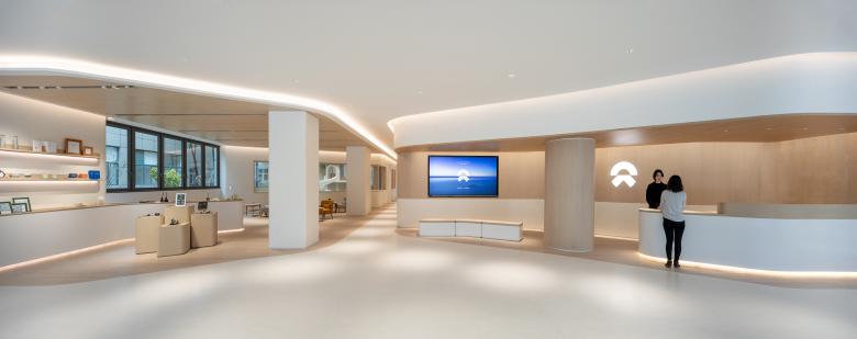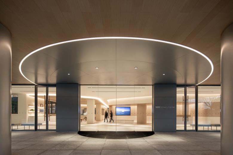 Realized in just seven months, the NIO Delivery Center has fast become a landmark in Jiading district thanks to its distinctive facade. Not only is it highly visible from the street, it also evokes the sleek lines and smooth movement of the electric vehicles themselves. Inside, the delivery center stays true to Kokaistudios’ redefined design template for NIO spaces. The interiors are reflective of NIO's brand principles — pure, human, progressive, sophisticated — by way of instruments including a muted palette, nature-inspired materials, multimedia displays, and a palpable focus on comfort.