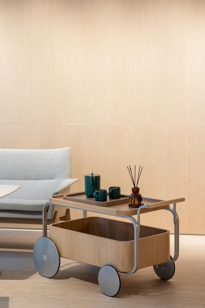 The space has been designed with volume and flexibility in mind. A busy facility with high foot traffic, elements such as noise absorption ceiling panels as well as terrazzo floor tailor the space for its purpose. And use the bamboo wood floor and wood veneer wall cladding to give the warm and natural touch for the space. The lounge also boasts plentiful seating and occasional tables to comfortably accommodate high visitor numbers. Custom-made furniture follows smooth, while simple lines match the silhouette of NIO cars themselves.