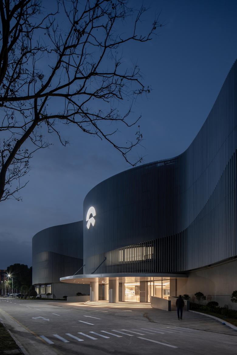 NIO’s largest delivery center to date follows a lifestyle-oriented interior design template created by Kokaistudios for the electric car brand. Housed inside a former factory, the building is newly renovated to become a local landmark thanks to a striking louvered facade.