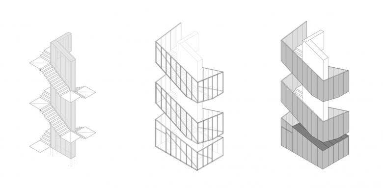 Die neue Außentreppe steht als eigenständige Skulptur in der offenen Nordostecke des Hauptbaus des Kollegiengebäudes I der Universität Freiburg. An dieser Position, der Schnittstelle von Platz der weißen Rose und Platz der alten Synagoge, ist sie zu beiden Plätzen gut sichtbar.