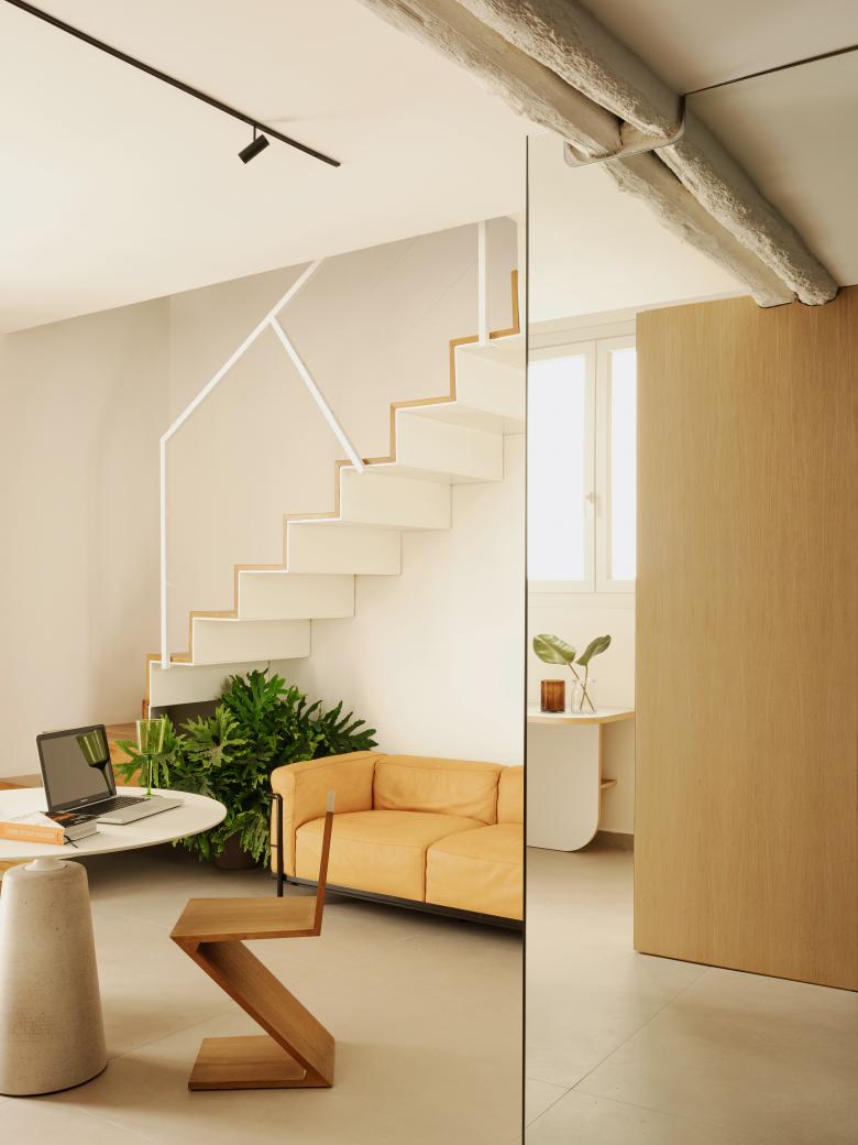 Il progetto riconfigura un piccolo appartamento su due livelli, collocato al piano terra di un palazzo storico nel Centro di Palermo, il cliente ha richiesto di organizzare un punto di appoggio vivendo fuori ma lavorando abitualmente in Città, prevedendo delle esigenze minime per un soggiorno costante ma temporaneo.