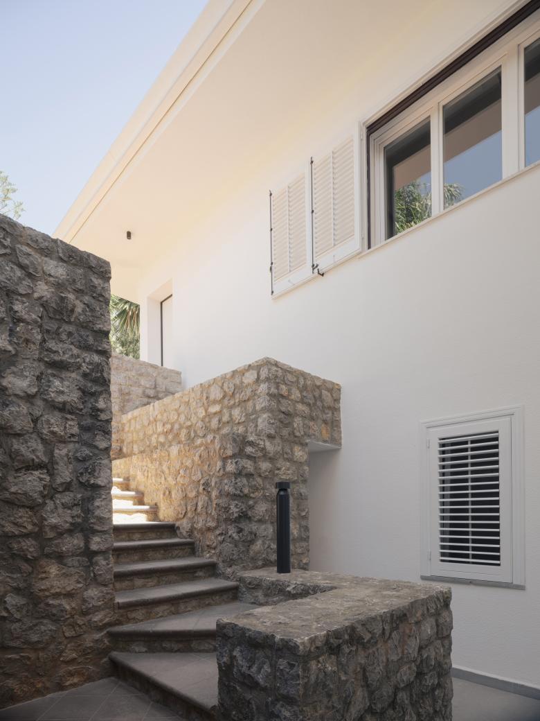 La pietra, dialoga adesso con l’intonaco bianco della facciata, parte delle pavimentazioni esterne vengono ripensate, come l’illuminazione, insieme ad un nuovo disegno per la cucina esterna.