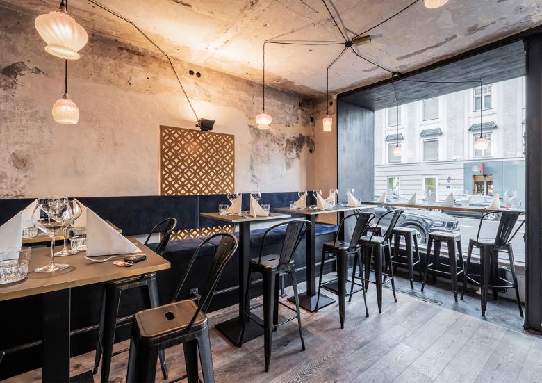 Gemeinsam mit MEISSL Architects konzipierte der gastronomieerfahrene Selle Coskun seinen jüngsten Betrieb als Brasserie und Bar mit mediterranem Flair.