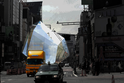 Fashion, quite often is about the tension between showing and hiding. Tokyo is a city full of encounters and events. We are interested in making fashion physical in such a city – the building itself is switchable – transmitting live events from all over the city. The tower itself switches between showing and hiding, like the constant changes of fashion; or metaphorically, between mirrors that reflects reality in its glittering surface and a mirage of reflected desire in someone else’s space.
