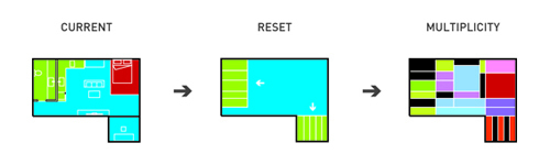 Inhabitants are able to (re)arrange the RESET Apt. according to the flexible order of daily events. Every 24-hour is a non-repeated cycle. The uncertainty of everyday life leads to the multiplicity of ”sequence”. Different event may occur at the same time. Therefore, the vertical axis of the sequence represents various possiblities, followed with a series of corresponding results. From this perspective, the 38 layouts in the “sequence” represent only certain anchor points of the reality, from which similar programs can be derived.