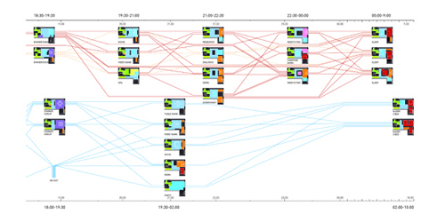 Moreover, the “sequence” has taken into account different scenarios of single user, double user and multi-user. Parallel (or cross) multiple trajectories was linked following different number of users. Even the same program, such as dining or watching movies, may result in different layout modes due to different occupancy.