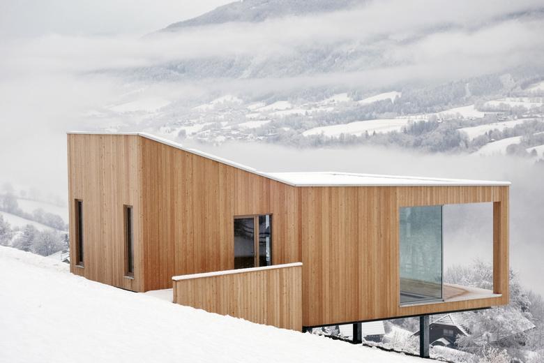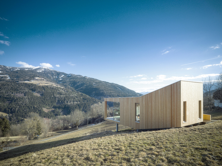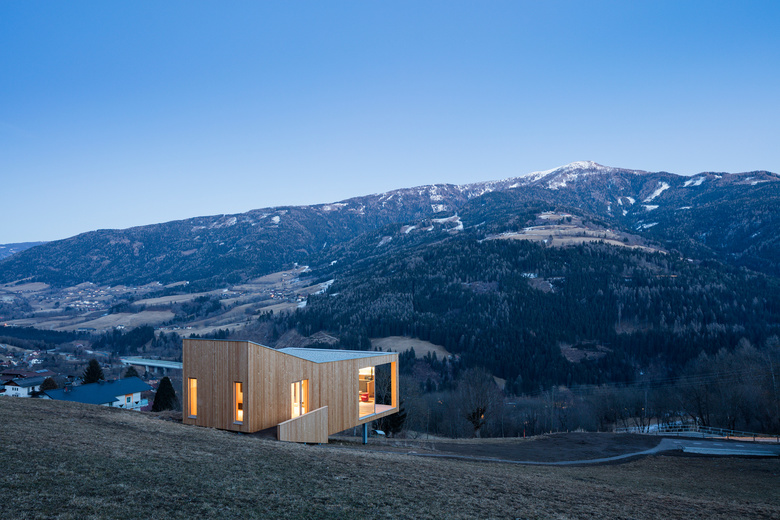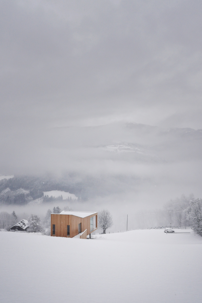 Der Wunsch nach einem Rückzugsort, einem Refugium und ein in Familienbesitz befindliches Hangwiesengrundstück gaben den Ausschlag dieses Haus im Kärntner Ort Trebesing zu bauen.