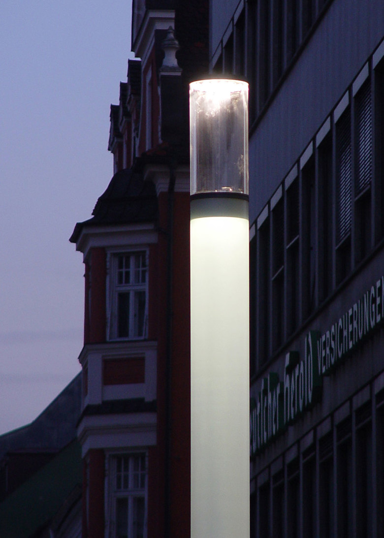 Ziel war es auf dieser Verbindungsachse in die Altstadt ein über die reine Zweckbeleuchtung hinausgehendes Beleuchtungskonzept zu entwickeln und eine blendfreie Ausleuchtung der Wegebereiche mit geplanten Licht-Schatten-Zonen zu schaffen. Dazu wurden Lichtpunkte entlang der Westseite in den Boden eingelassen und auf der gegenüberliegenden Seite Stelen platziert, die eigens für die Maximilianstrasse entwickelt wurden.