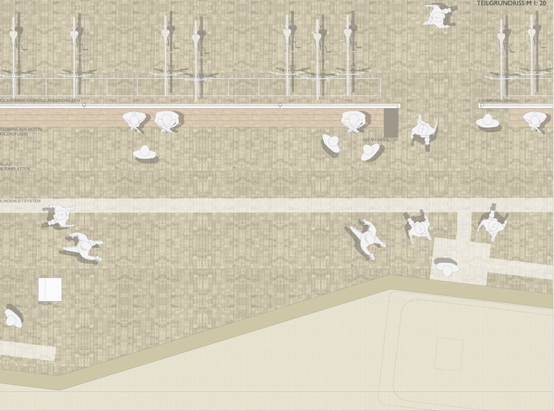 Der neue Busbahnhof für Regionalbusse am Bahnhof in Augsburg muss sich in einem heterogenen Umfeld behaupten. Aus diesem Grund wird eine klare und einfache Konstruktion gewählt die sich in diesem Umfeld behaupten kann.
