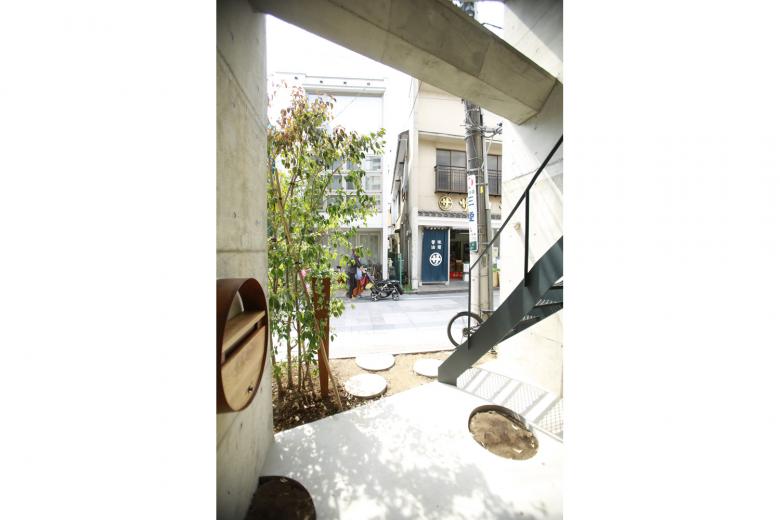 前面道路より。2階まで直接アプローチできるため、家全体が街に開かれたようないろんなイベントに利用されています。