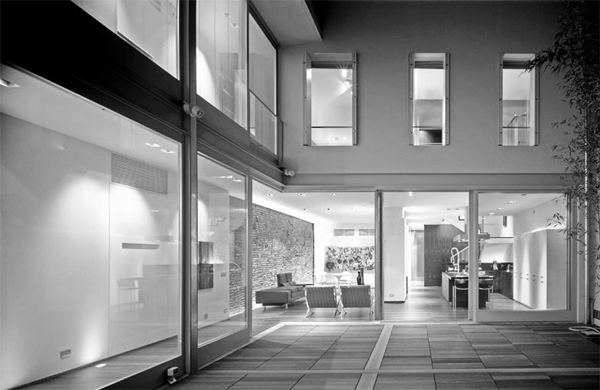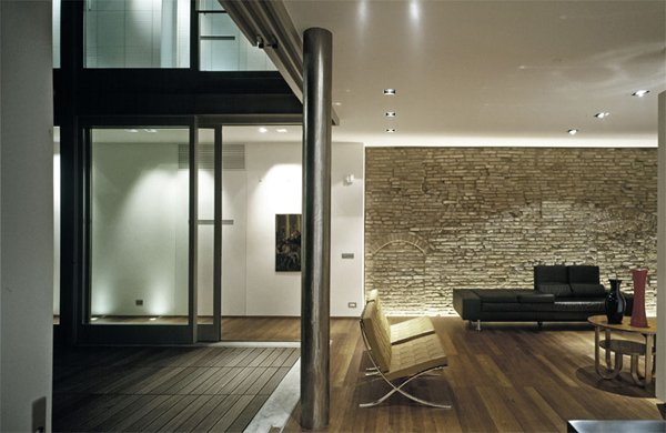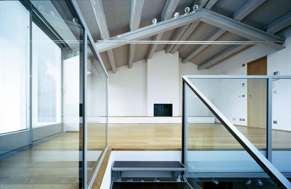 L'edificio è un esempio tipico del lotto gotico della città storica, un'architettura residenziale minore tuttavia non priva di qualche peculiarità, come la facciata a quattro assialità di finestre con modanature, fasce marcapiano, davanzali in sasso d'Istria e cornicione in cotto. L'interno, completamente compromesso dalla ricostruzione del dopoguerra, si presentava articolato in due corpi separati: il principale, sulla strada, di due piani fuori terra e copertura a due falde, il secondario, posto sul lato opposto del cortile interno, sempre a due piani ma con copertura piana. Il tutto in stato di profondo degrado. L'intervento di recupero si è articolato nell'opera di restauro del corpo principale, che ha valorizzato alcuni elementi storici inaspettati, come il muro quattrocentesco del soggiorno che è emerso nel corso dei lavori e che è stato consolidato com'era dov'era, e nella ricomposizione architettonica del corpo secondario, progettato per concorrere con il fabbricato storico alla formazione di una corte interna che è diventata il fulcro della nuova abitazione. Sul giardino di vetro, la cui privacy è garantita dall'alto muro di confine, si affacciano gli spazi principali della casa, filtrati da aperture scorrevoli che permettono la totale continuità tra interno ed esterno. Il restauro è stato effettuato nel rispetto delle metodologie costruttive tradizionali, mentre l'addizione, che si affianca ed entra nella parte storica con la grande vetrata del piano terra, è stata realizzata con strutture portanti in ferro, tali da confondersi nel disegno delle grandi vetrate, anch'esse realizzate in profili di ferro. I pavimenti sono ovunque in legno ,di teak al piano terra e nel cortile, in wengè al primo, in rovere al secondo.
