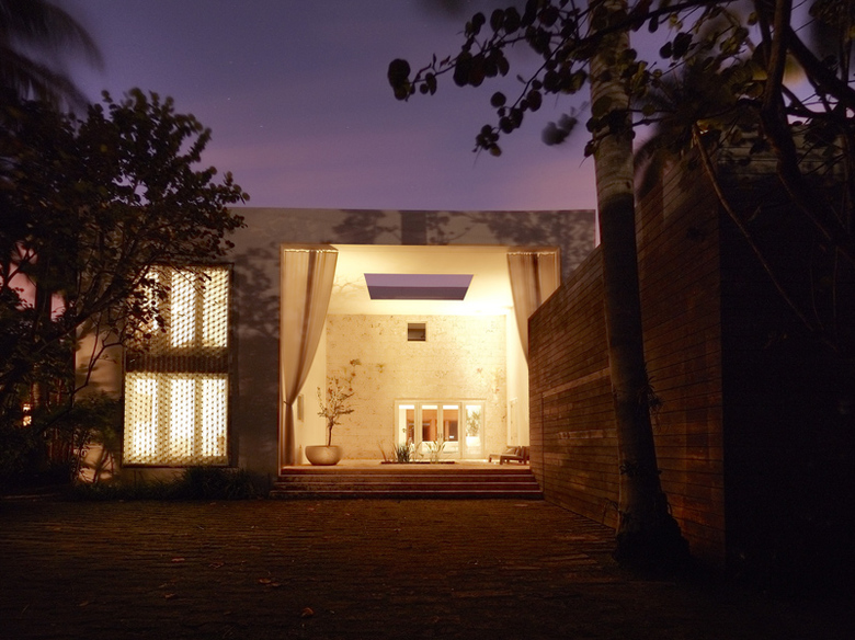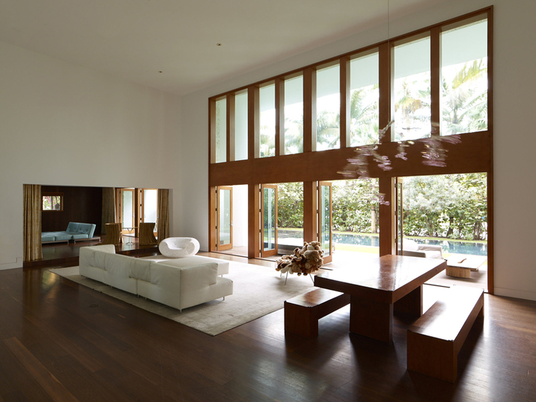 Das Projekt, ein unauffälliges, einstöckiges Wohnhaus, dem tropischen Klima von Miami optimal angepasst. Die innovativen Maßnahmen überzeugen in ihrer Gänze, wobei an der bestehenden Struktur nur minimale Änderungen vorgenommen werden mussten. Das Haus wird durch einen 6x9x9m-großen Bereich betreten, in dem ein Reflexionsbecken und ein Ochsenauge so ausgerichtet sind, dass sie eine optimale Leuchtdichte in den Bereich filtern. Ein großer Raum unterteilt das Haus in private und öffentliche Bereiche. Gigantische Räume mit überdimensionierten Fenstern überblicken den Pool und den Kanal. Ein 18x6x6m-Außenwohnbereich ist im hinteren Teil des Hauses konzipiert. Eine große runde Säule enthält eine Außendusche mit einem offenen Deckenbereich. Die zweite Etage umfasst einen abgeschlossenen Gartenhof außerhalb des Hauptschlafzimmers für private Aktivitäten. Das Projekt bietet eine flexible Infrastruktur die ausgelegt ist, um eine optimale Lebensqualität zu gewährleisten.