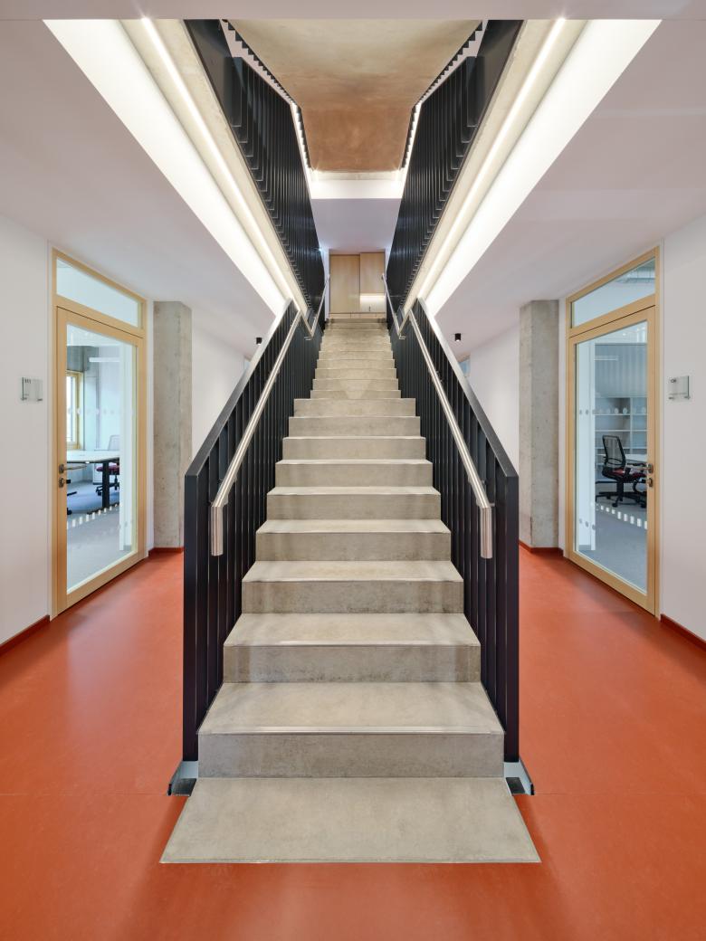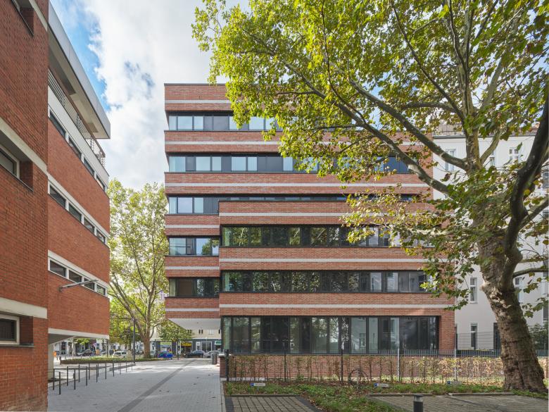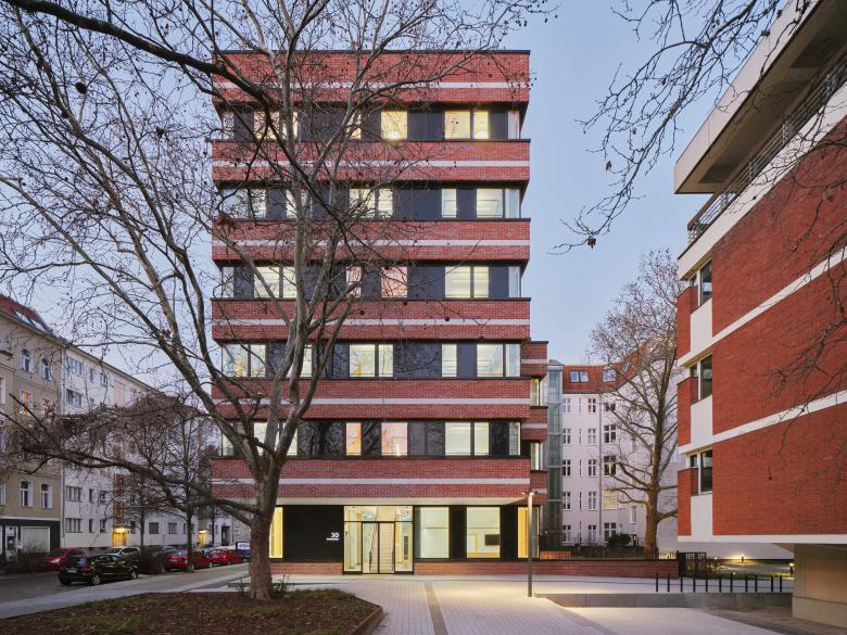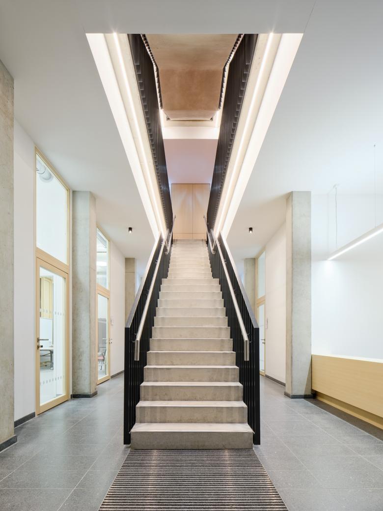 In seiner Typologie orientiert sich der Neubau an den Grundprinzipien des bestehenden Ensembles, ohne diese zu imitieren. Es entsteht ein selbstbewusster und moderner, keineswegs aufgeregter neuer Baustein für das denkmalgeschützte Ensemble, der sich selbstverständlich und dennoch prägnant in seinen städtebaulichen Kontext eingliedert.