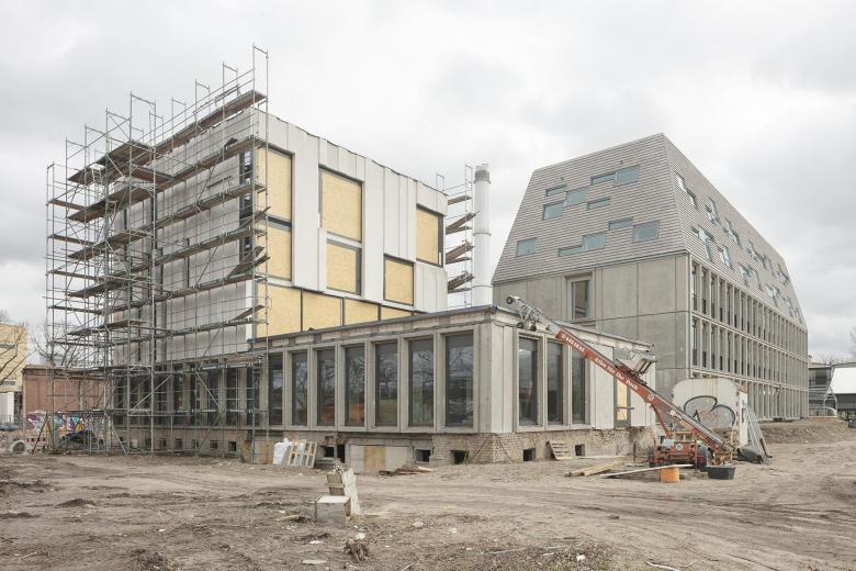 Neben zwei unter Denkmalschutz stehenden Gebäude aus Zeiten der Flussbadeanstalt sind zwei Bauten aus DDR-Zeiten erhalten, die umgenutzt und aufgestockt werden - das ehemalige Dienstgebäude und die ehemalige Kantine.