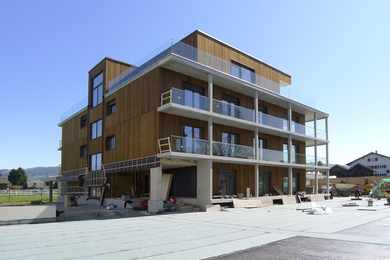 Ganz im Sinne einer inneren Verdichtung entstanden inmitten des Siedlungsgebietes auf einer ehemaligen EFH-Liegenschaft zwei Mehrfamilienhäuser mit insgesamt 14 Eigentumswohnungen.