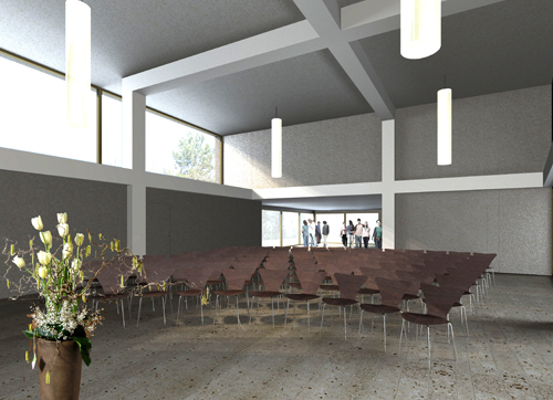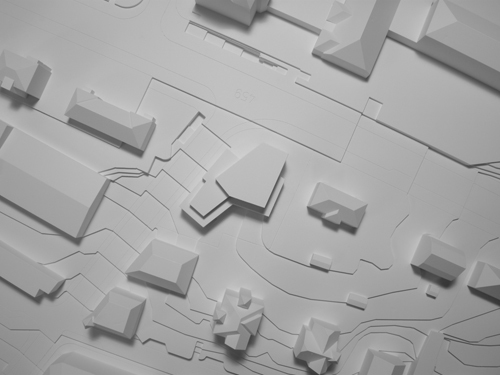 Die Parzelle für den Neubau der Evangelisch-methodistischen Kirche liegt prominent an der Ecke Regensbergstrasse/Gubelhangstrasse in einem älteren Wohnquartier in ummittelbarer Nähe zum Zentrum von Oerlikon. Das Quartier wird durch die markante Schulanlage dominiert. Das gestaffelte Volumen des Neubaus übernimmt die Proportionen der nachbarschaftlichen Gebäude und integriert das volumenmaximierte Gebäude bestmöglich im bestehenden Kontext. Die markante Stirnfassade an der Regensbergstrasse bildet ein Pendant zur dominanten Schulanlage. Die optimale Ausnützung der Parzelle gewährleistet eine hohe Wertschöpfung.
