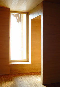 Alt- und Neubau werden unter gegenseitigem Respekt zusammengefügt. Von Aussen setzt sich der Anbau - trotz subtilen Gemeinsamkeiten wie Traufhöhe und Fenstergewände - selbstbewusst vom bestehenden Schulhaus ab. Im Innern jedoch verbinden sich Alt und Neu zu einer Einheit von unerwarteter Grosszügigkeit.