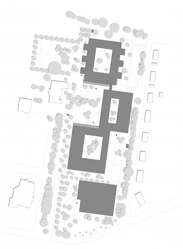 Wo bisher die Schülerinnen und Schüler des Gymnasiums auf dem Sportplatz zu Höchstleistungen angespornt wurden, entstanden drei Neubauten: Ein gemeinsamer Fachklassentrakt, die neu angesiedelte Gemeinschaftsschule und eine Sporthalle am Kopf des Grundstücks. Trotz der räumlichen Zusammenlegung bleibt die Eigenständigkeit beider Schulen durch eine konsequente funktionale Trennung erhalten. Dank lichtdurchfluteter Fach- und Klassenräume und multifunktionaler Erschließungszonen mit individuellem Mobiliar, werden hier nicht mehr ausschließlich sportliche Bestleistungen erbracht, sondern ebenso gestalterische oder mathematische. Es werden nicht nur Schulfeste in der großzügigen Halle der Gemeinschaftsschule stattfinden können oder Konzerte in der bestehenden Aula, sondern auch öffentliche Veranstaltungen der Stadt in der bis zu 1.000 Gäste fassenden Sporthalle. Das gesamte städtische Umfeld – vom Stadtpark bis zum Tennisplatz – erhält durch den Schulcampus neue Impulse!