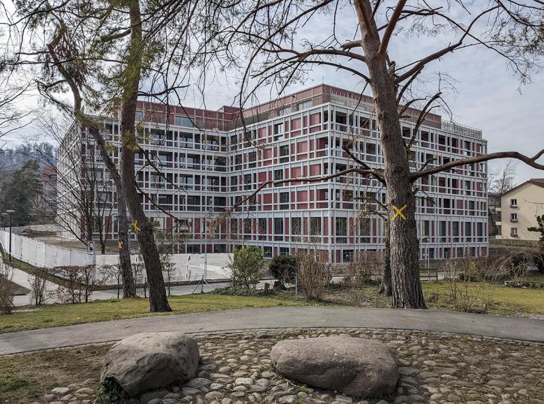 Ersatzneubau des Alterszentrums Mathysweg in Zürich Albisrieden. Einpassung eines grossen Bauvolumens in ein Wohnquartier. Vertikaler Nutzungsmix mit öffentlicher Cafeteria, Speisesaal und Mehrzweckraum im Erdgeschoss, darüber vier Wohngeschosse und ein Attikageschoss als Pflegeabteilung mit Demenzterrasse. Gartengeschoss mit Spitexzentrum und Wellnesseinrichtung.