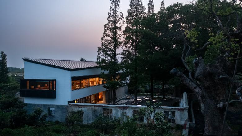 五樟庭的名字也因场地而得名。项目的意义是以记忆与场地为基础的。历史、当下与未来之间的并置探讨,并不只是对废墟与新生的考量,而是一种重叠与重构。当新的变旧(废弃的村塾小学),旧的消融进时光(老的服装厂外墙),更新的(五樟庭文化会客厅)又再会出现后,此时的新旧又是怎样的一种姿态,这便是这个项目的挑战。设计基于苏州的江南水乡村落文化与古典园林文化特点,尊重历史、融入当地、传承文化、创造价值,打造西山地域文化传承与发展的乡村会客厅。
